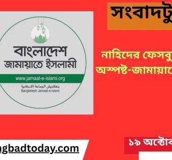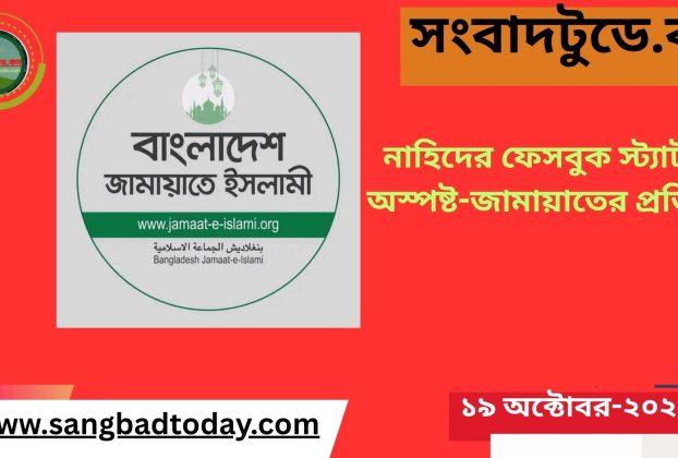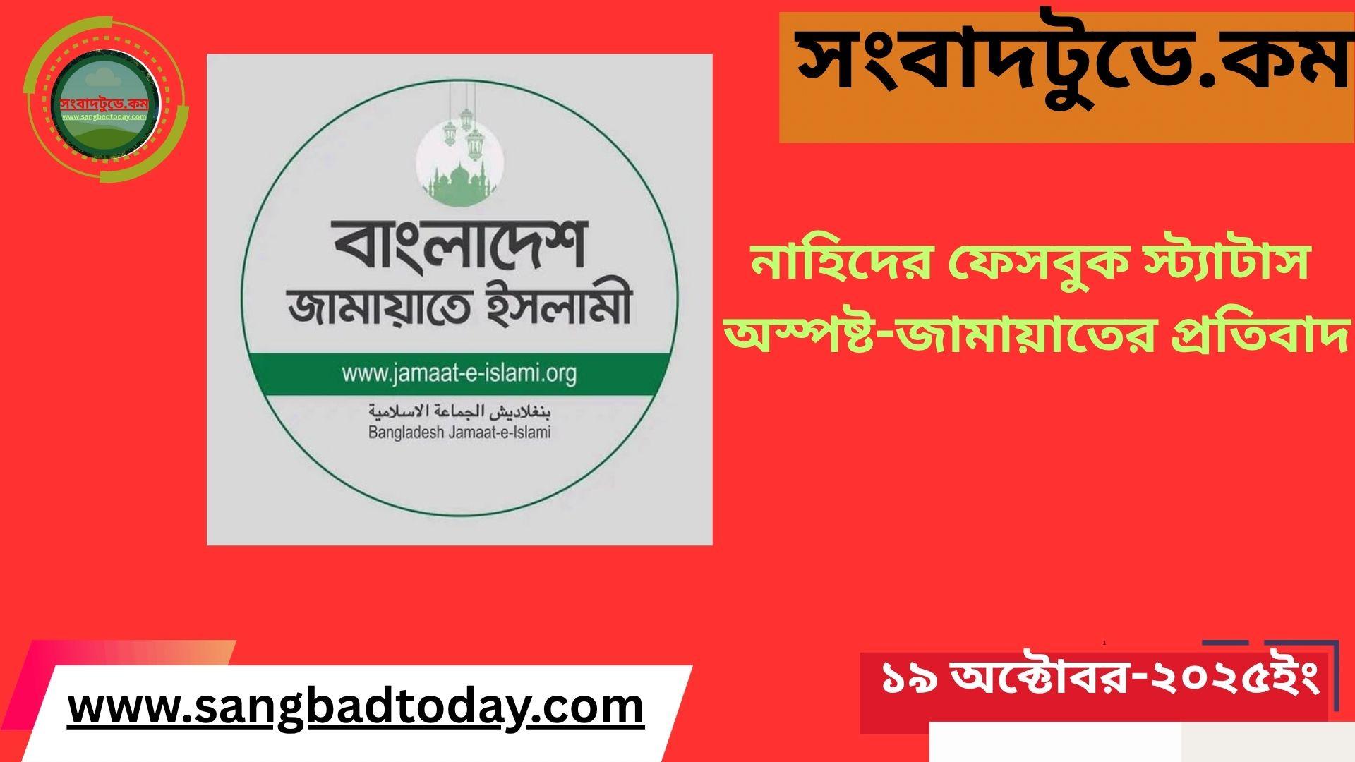 নাহিদের ফেসবুক স্ট্যাটাস অস্পষ্ট-জামায়াতের প্রতিবাদ