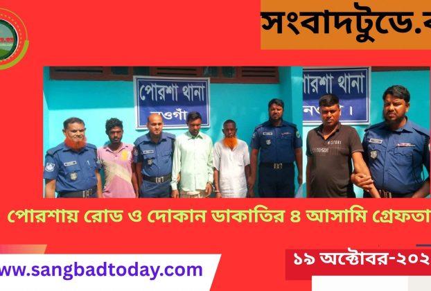 পোরশায় রোড ও দোকান ডাকাতির ৪ আসামি গ্রেফতার