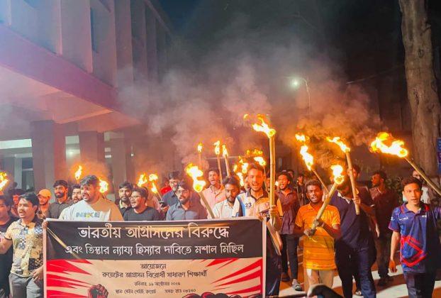 তিস্তার ন্যায্য পানিবণ্টনের দাবিতে রুয়েটে মশাল মিছিল