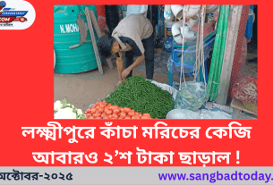 লক্ষ্মীপুরে কাঁচা মরিচের কেজি আবারও ২’শ টাকা ছাড়াল ! তাবারক হোসেন আজাদ, লক্ষ্মীপুর: কাঁচা মরিচের দাম আবার ২০০ টাকা ছাড়াল। খুচরা বাজারে এখন এক কেজি কাঁচা মরিচের দাম ২২০ টাকার আশপাশে। অবশ্য সাধারণ ক্রেতারা একসঙ্গে এক কেজি কাঁচা মরিচ কেনেন না। ২৫০ গ্রাম কাঁচা মরিচ কিনতে তাঁদের অন্তত ৫৫-৬০ টাকা খরচ করতে হচ্ছে। পাঁচ দিন […]