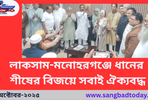 লাকসাম-মনোহরগঞ্জে ধানের শীষের বিজয়ে সবাই ঐক্যবদ্ধ লাকসাম প্রতিনিধিঃ ১৫ নভেম্বর ২০২৫ শনিবার সন্ধ্যা লাকসাম বিএনপি পার্টি অফিসে এক ঐতিহাসিক মিলনমেলা অনুষ্ঠিত হলো, যা লাকসাম বিএনপিতে নতুন দিগন্তের সূচনা করেছে। বিএনপির স্থায়ী কমিটির সদস্য মোঃ বরকত উল্লাহ বুলুর উপস্থিতিতে, লাকসামে বিএনপির মনোনীত প্রার্থী, ধানের শীষের কান্ডারী মোঃ আবুল কালাম এর গ্রুপের সাথে প্রয়াত কর্নেল (অব.)এম আনোয়ার […]