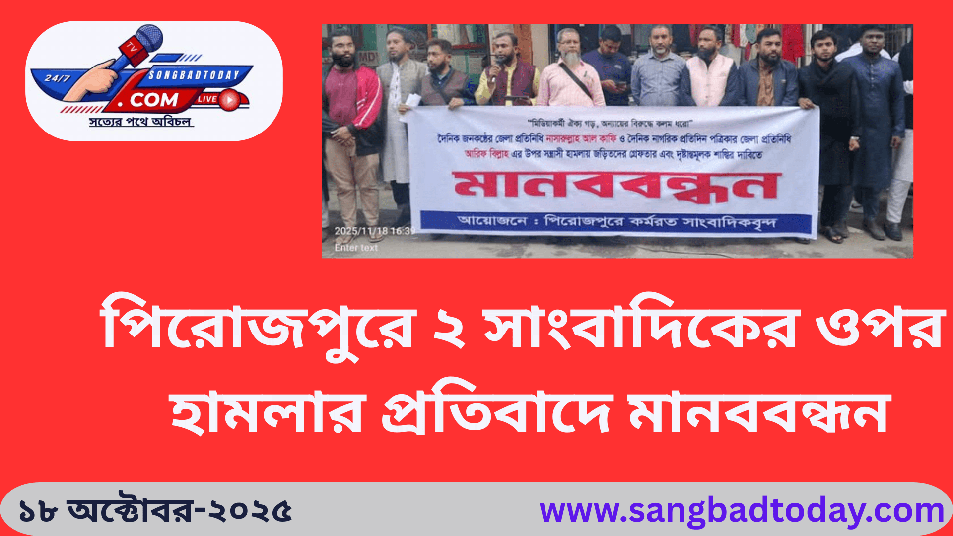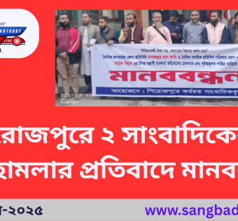 পিরোজপুরে ২ সাংবাদিকের ওপর হামলার প্রতিবাদে মানববন্ধন