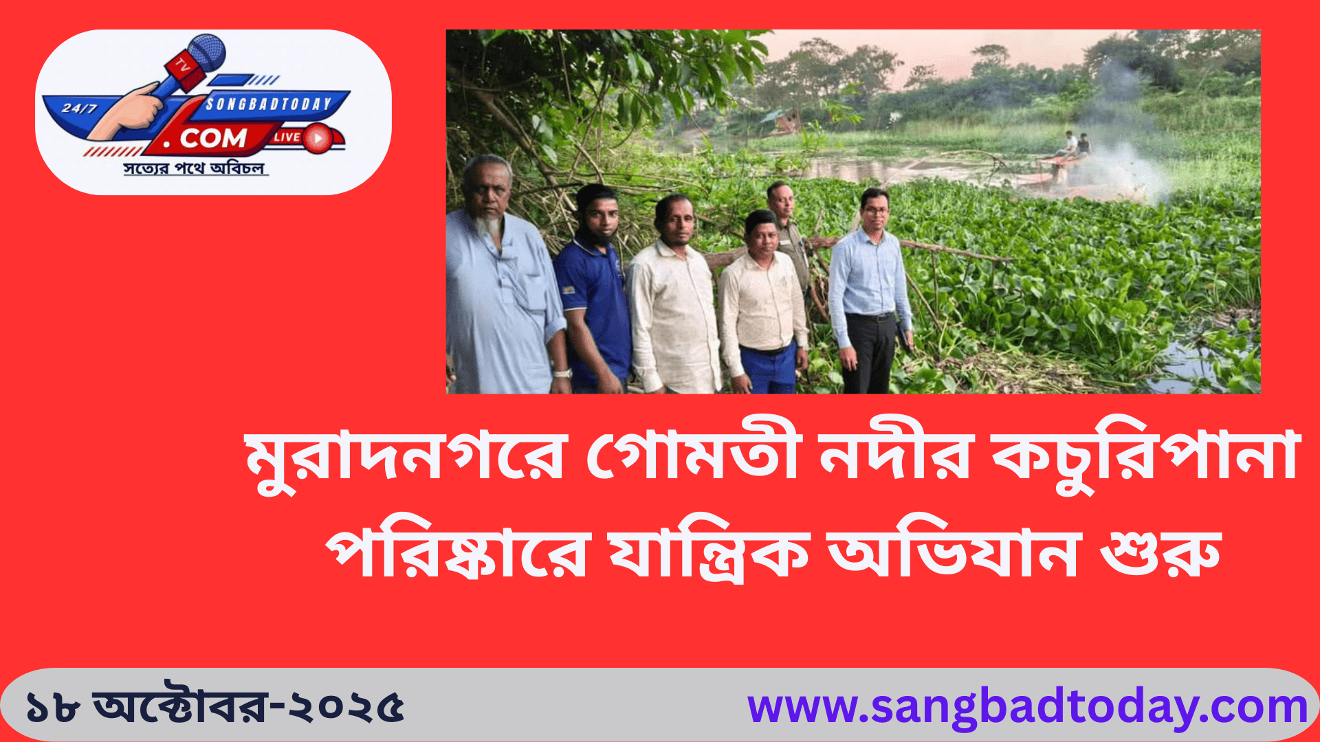 মুরাদনগরে গোমতী নদীর কচুরিপানা পরিষ্কারে যান্ত্রিক অভিযান শুরু