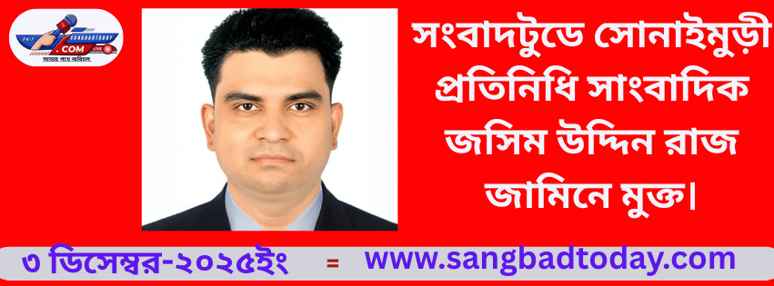 সংবাদটুডে সোনাইমুড়ী প্রতিনিধি সাংবাদিক জসিম উদ্দিন রাজ জামিনে মুক্ত