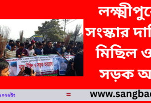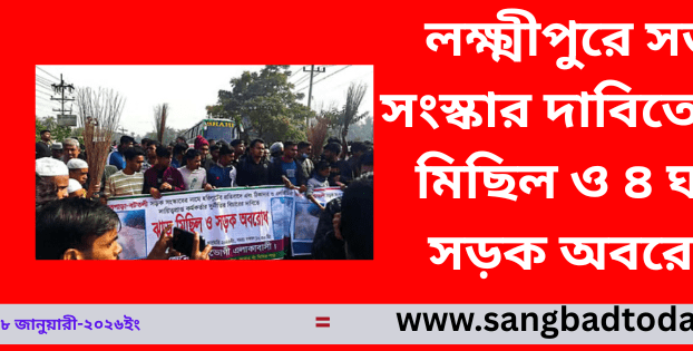 লক্ষ্মীপুরে সড়ক সংস্কার দাবিতে ঝাড়ু মিছিল ও ৪ ঘন্টা সড়ক অবরোধ