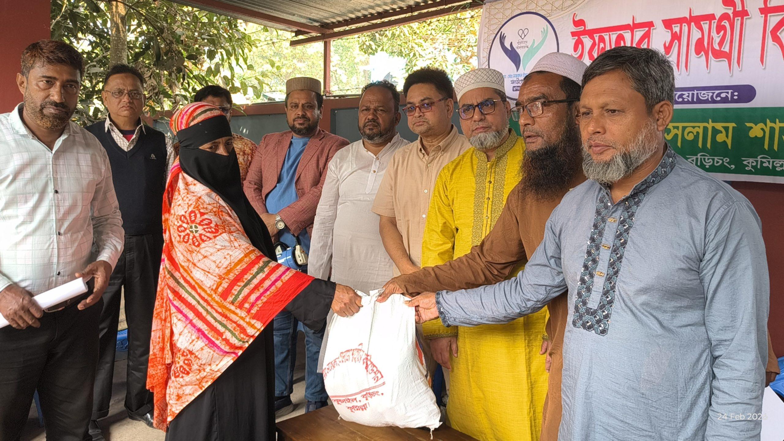 বুড়িচংয়ে ডা. নজরুল ইসলাম শাহীন ফাউন্ডেশনের উদ্যোগে ইফতার সামগ্রী বিতরণ