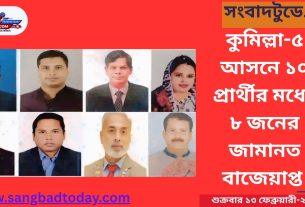 কুমিল্লা-৫ আসনে ১০ প্রার্থীর মধ্যে ৮ জনের জামানত বাজেয়াপ্ত