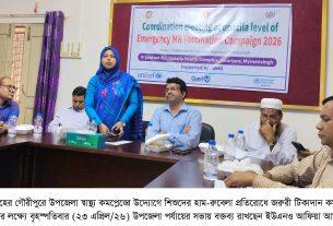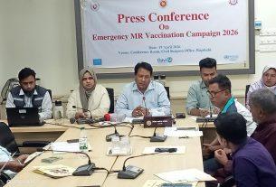 হাম-রুবেলা ক্যাম্পেইন উপলক্ষে রাজশাহীতে সাংবাদিক সম্মেলন শিবলী সাদিক, রাজশাহীঃ জাতীয় পর্যায়ে গৃহীত কর্মপরিকল্পনার আলোকে সিভিল সার্জন, রাজশাহীর সভাপতিত্বে এক সংবাদ সম্মেলন অনুষ্ঠিত হয় । উক্ত সভায় জেলায় হাম-রুবেলা ক্যাম্পেইন-২০২৬ বাস্তবায়নের লক্ষ্যে ৬ মাস থেকে ৫৯ মাস বয়সী সকল শিশুকে এক ডোজ এম-আর ভ্যাকসিন প্রদান করা হবে মর্মে সভায় জানানো হয় । উপজেলা পর্যায়ে […]
