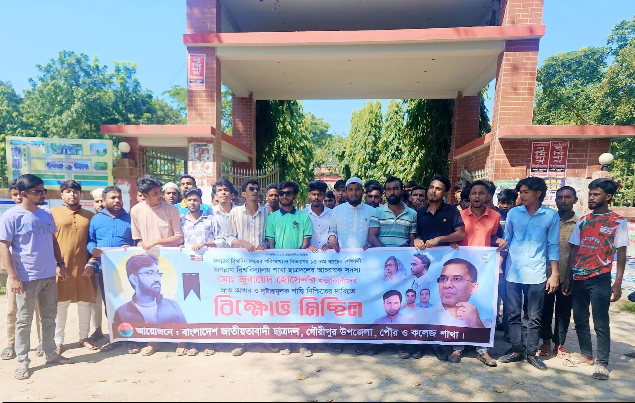জগন্নাথ বিশ্ববিদ্যালয় ছাত্রদল নেতা হত্যার প্রতিবাদে গৌরীপুরে বিক্ষোভ