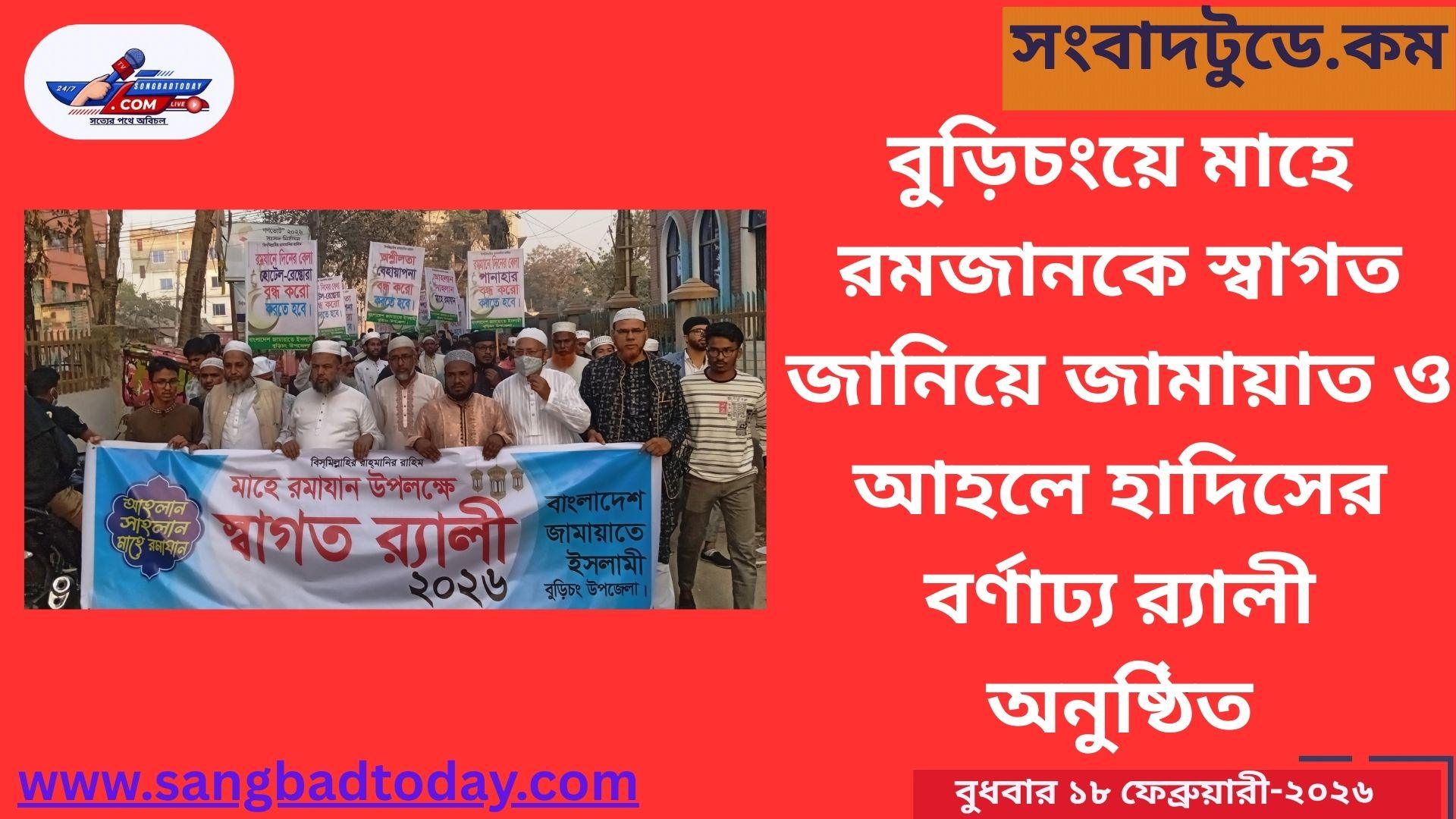 বুড়িচংয়ে মাহে রমজানকে স্বাগত জানিয়ে জামায়াত ও আহলে হাদিসের বর্ণাঢ্য র্যালী অনুষ্ঠিত সৌরভ মাহমুদ হারুন, বুড়িচংঃ বুধবার ১৮ ফেব্রুয়ারি বিকেলে কুমিল্লার বুড়িচং উপজেলা জামায়াতে ইসলামী ও অঙ্গ সংগঠনের এবং উপজেলা আহলে হাদিসের উদ্যোগে মাহে রমজান কে স্বাগত জানিয়ে দিনে পানাহার এবং হোটেল রেস্তোরাঁ বন্ধের দাবিতে উপজেলা পরিষদের প্রাঙ্গণ থেকে পৃথক পৃথক ভাবে দুটি বর্ণাঢ্য র্যালী বের হয়ে উপজেলার প্রধান প্রধান সড়ক প্রদক্ষিণ করে। এতে প্রধান অতিথি হিসেবে নেতৃত্ব দেন কেন্দ্রীয় ছাত্র শিবিরের সাবেক সভাপতি ও সদ্য জাতীয় সংসদ নির্বাচনে অংশগ্রহণ কারী এডভোকেট ডক্টর মুহাম্মদ মোবারক হোসাইন। অতিথি হিসেবে উপস্থিত ছিলেন এবং র্যালীতে অংশ গ্রহণ করেন উপজেলা সাবেক আমির অধ্যাপক মুহাম্মদ আব্দুল আউয়াল, বর্তমান আমির অধ্যাপক মুহাম্মদ অহিদুর রহমান, অধ্যক্ষ মুহাম্মদ আব্দুল হান্নান, সাবেক উপজেলা ভাইস চেয়ারম্যান সাইফুল আলম, উপজেলা সেক্রেটারি মাওলানা আবুল হোসেন, সহকারী সেক্রেটারি প্রধান শিক্ষক মুহাম্মদ কবির হোসাইন, সহকারী সেক্রেটারি ফারুক চৌধুরী, ওলায়মা বিভাগের সভাপতি মাওলানা আব্দুস সালাম, মাওলানা জাকারিয়া খান সৌরভ, জয়নাল আবেদীন, ইসলামি ছাত্র শিবিরের সভাপতি সফি উল্লাহ, সেক্রেটারি ইফসালুর রহমান শিহাব প্রমূখ। অপরদিকে উপজেলা আহলে হাদিস আন্দোলনের কুমিল্লা জেলা সভাপতি মুফতি মাওলানা ছফি উল্লাহ এর নেতৃত্বে বর্ণাট্য র্যালীতে অংশগ্রহণ করেন মাওলানা আমজাদ হোসেন, মাওলানা ইউসুফ আহাম, মাওলানা অধ্যক্ষ মুহাম্মদ রায়হান উদ্দিন,জেলা বৈষম্য বিরোধী ছাত্র দলের নেতা সাব্বির আহমেদ, মাওলানা আব্দুল মজিদ, মাওলানা মুহাম্মদ জহিরুল ইসলাম, এনামুল হক, কবির হোসেন, আব্দুর রহমান, জি এম নজরুল ইসলাম, ফেরদৌস আলম প্রমূখ।