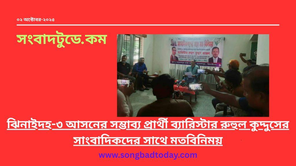 ঝিনাইদহ-৩ আসনের সম্ভাব্য প্রার্থী ব্যারিস্টার রুহুল কুদ্দুসের সাংবাদিকদের সাথে মতবিনিময়