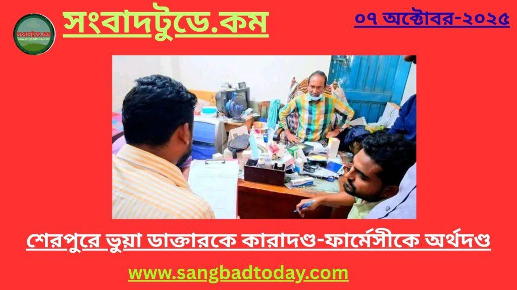 শেয়ার করুন….,শেরপুরে ভুয়া ডাক্তারকে কারাদণ্ড-ফার্মেসীকে অর্থদণ্ড আব্দুল লতিফ, শেরপুরঃ শেরপুর জেলার নালিতাবাড়ীতে স্বাস্থ্যখাতে অব্যবস্থাপনা ও প্রতারণার বিরুদ্ধে অভিযান চালিয়ে এক ভুয়া ডাক্তারকে তিন মাসের বিনাশ্রম কারাদণ্ড এবং একটি ফার্মেসিকে ১৫ হাজার টাকা অর্থদণ্ড প্রদান করেছে ভ্রাম্যমাণ আদালত। আজ মঙ্গলবার (৭ অক্টোবর ২০২৫) দুপুরে উপজেলার তারাগঞ্জ মধ্যবাজার এলাকায় সহকারী কমিশনার (ভূমি) ও নির্বাহী ম্যাজিস্ট্রেট মোঃ আনিসুর … Continue reading শেরপুরে ভুয়া ডাক্তারকে কারাদণ্ড-ফার্মেসীকে অর্থদণ্ড