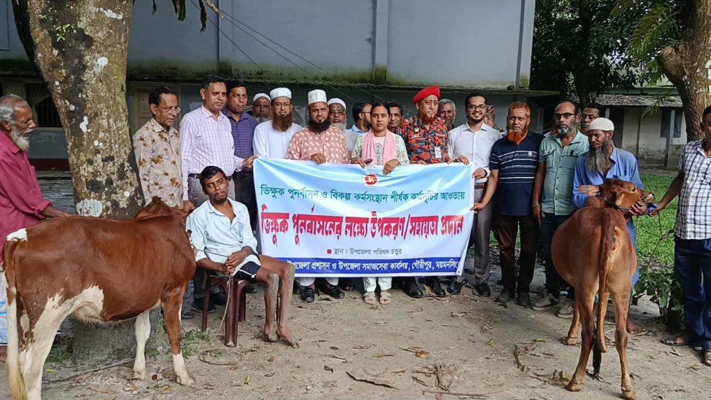 গৌরীপুরে ভিক্ষাবৃত্তিতে নিয়োজিত জনগোষ্ঠীর পুনর্বাসনে গরু বিতরণ