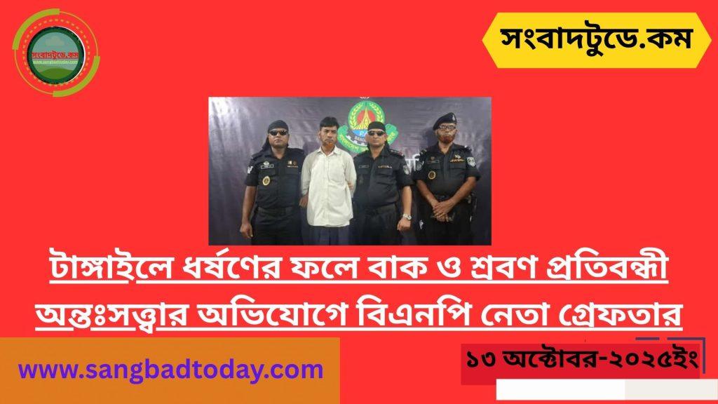 টাঙ্গাইলে ধর্ষণের ফলে বাক ও শ্রবণ প্রতিবন্ধী অন্তঃসত্ত্বার অভিযোগে বিএনপি নেতা গ্রেফতার