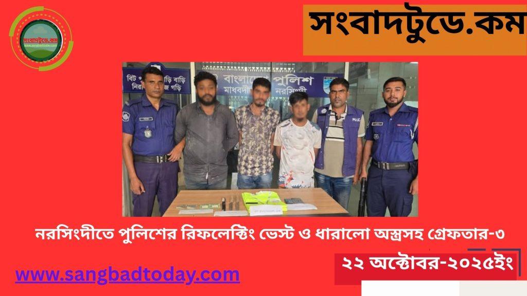 নরসিংদীতে পুলিশের রিফলেক্টিং ভেস্ট ও ধারালো অস্ত্রসহ গ্রেফতার-৩