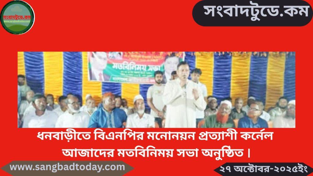 ধনবাড়ীতে বিএনপির মনোনয়ন প্রত্যাশী কর্নেল আজাদের মতবিনিময় সভা অনুষ্ঠিত