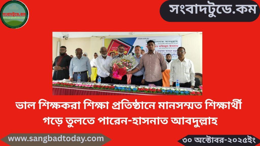 ভাল শিক্ষকরা শিক্ষা প্রতিষ্ঠানে মানসম্মত শিক্ষার্থী গড়ে তুলতে পারেন-হাসনাত আবদুল্লাহ