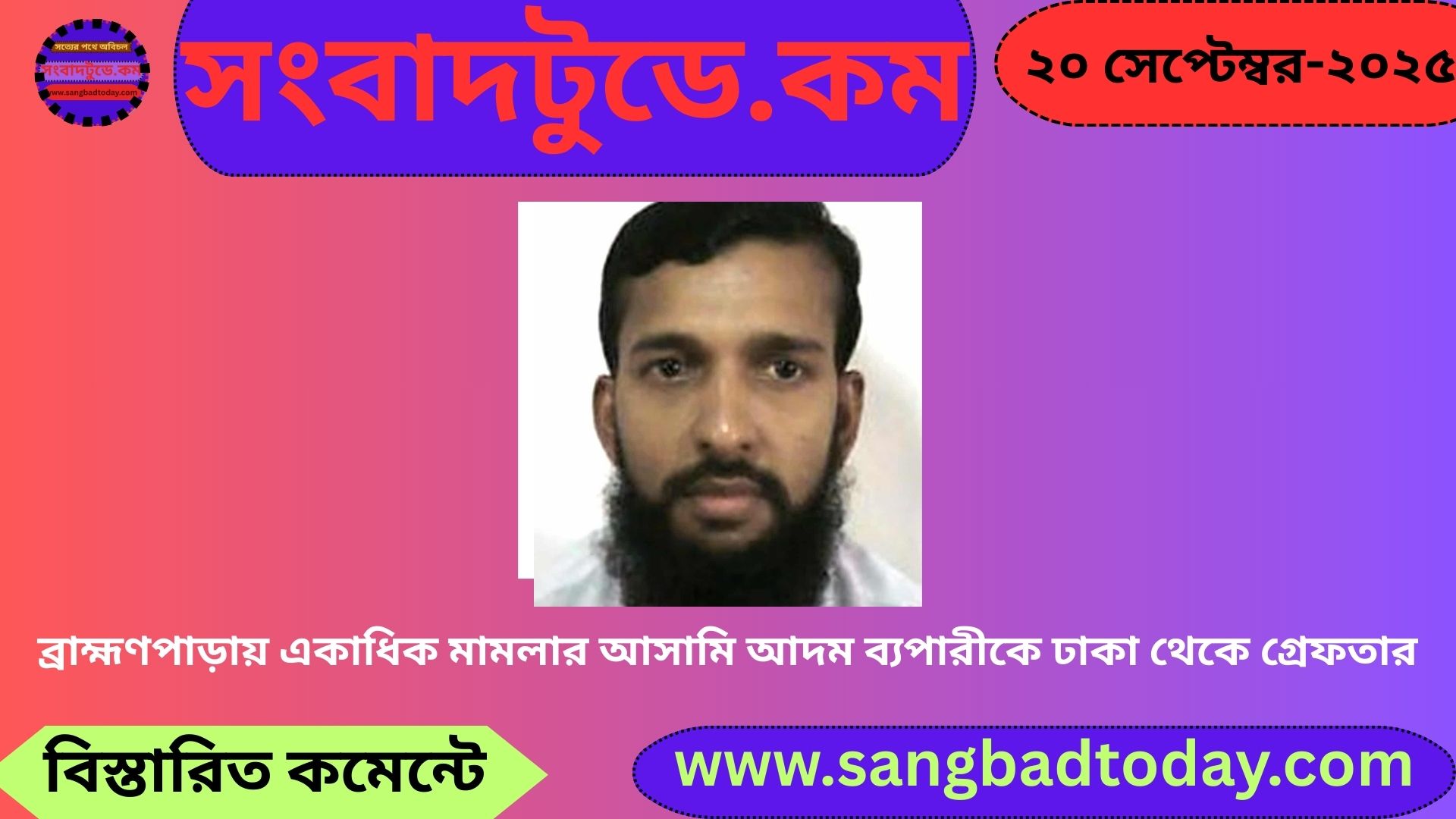 ব্রাহ্মণপাড়ায় একাধিক মামলার আসামি আদম ব্যপারীকে ঢাকা থেকে গ্রেফতার