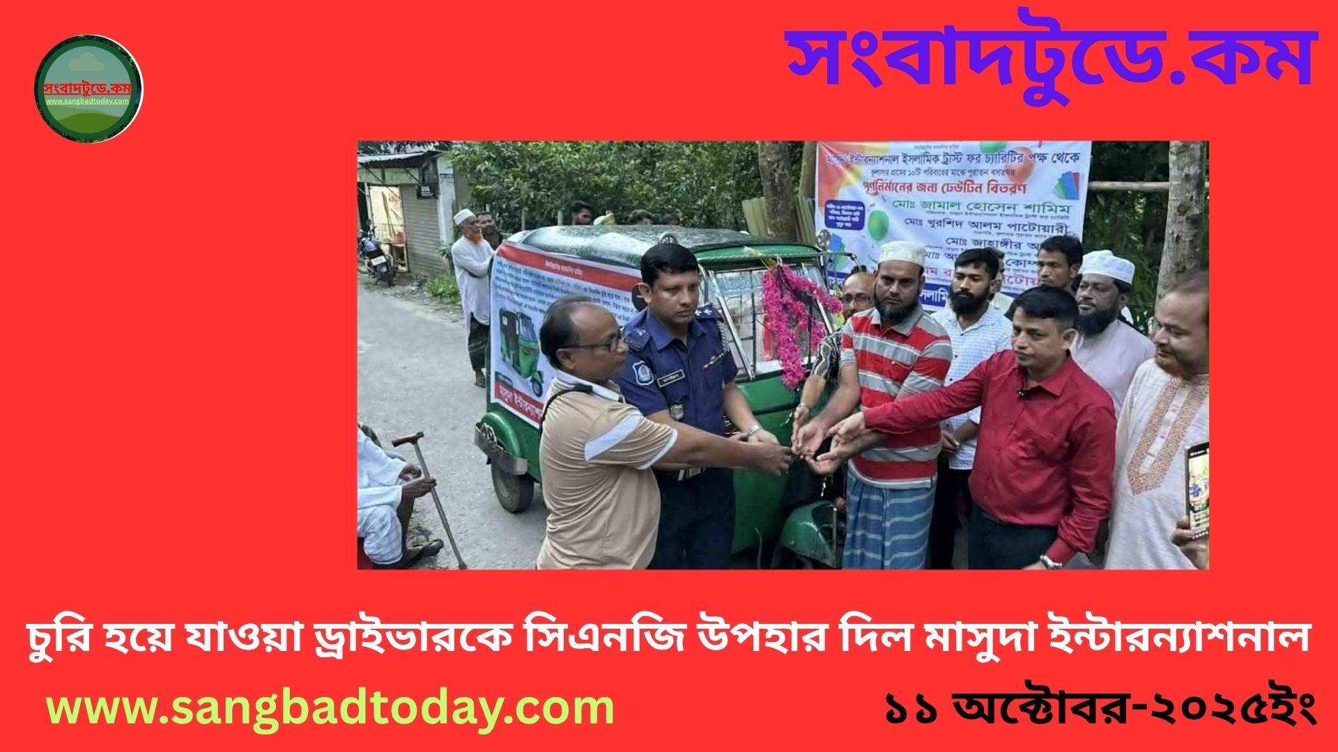 চুরি হয়ে যাওয়া ড্রাইভারকে সিএনজি উপহার দিল মাসুদা ইন্টারন্যাশনাল