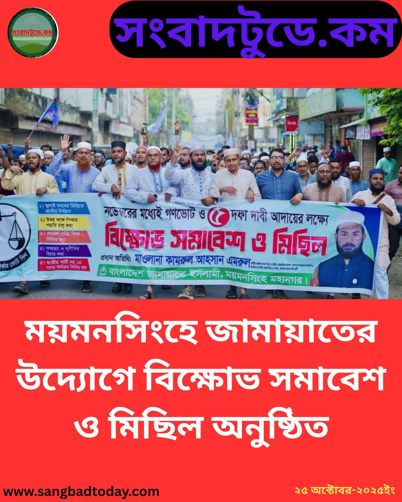 ময়মনসিংহে জামায়াতের উদ্যোগে বিক্ষোভ সমাবেশ ও মিছিল অনুষ্ঠিত
