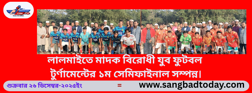 লালমাইতে মাদকবিরোধী যুব ফুটবল টুর্ণামেন্টের ১ম সেমিফাইনাল সম্পন্ন