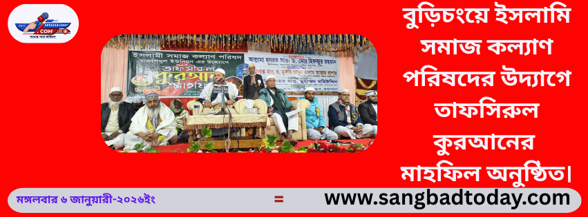 বুড়িচংয়ে ইসলামি সমাজ কল্যাণ পরিষদের উদ্যাগে তাফসিরুল কুরআনের মাহফিল অনুষ্ঠিত সৌরভ মাহমুদ হারুন, বুড়িচংঃ কুমিল্লার বুড়িচং উপজেলার কালিকাপুর আব্দুল মতিন খসরু সরকারি কলেজ মাঠে ইসলামি সমাজ কল্যাণ পরিষদ বাকশীমূল ইউনিয়ন এর আয়োজনে সোমবার ৫ জানুয়ারি বিকাল ৩টা থেকে রাত ব্যপী তাফসিরুল কোরআনের মাহফিল অনুষ্ঠিত হয়েছে। উক্ত মাহফিলে সভাপতিত্ব করেন অধ্যাপক মোহাম্মদ সাদেকুর রহমান। প্রধান অতিথি হিসেবে ওয়াজ ফরমান তামিরুল মিল্লাত কামিল মাদ্রাসার অধ্যক্ষ ড.মোঃ হিফজুর রহমান। প্রধান আলোচক হিসেবে ওয়াজ ফরমান হযরত মাওলানা ড. মুফতি আবুল কালাম আজাদ বাশার,ঢাকা। প্রধান শিক্ষক কবির হোসেন এর পরিচালনায় বিশেষ অতিথি হিসেবে বক্তব্য রাখেন মুফতি হযরত মাওলানা মহিউদ্দিন, আমন্ত্রীত উলামায়ে কেরাম গণ উপস্থিত ছিলেন। আরও বক্তব্য রাখেন অধ্যক্ষ মোহাম্মদ মোশারফ হোসেন, অধ্যক্ষ মাওলানা মোহাম্মদ জাহাঙ্গীর খান, মাওলানা আল-আমীন শিল্পী, উপাধ্যক্ষ মাওলানা মোহাম্মদ জাহিদ উল্লাহ, মাওলানা মোহাম্মদ জাহাঙ্গীর আলম, হযরত মাওলানা […]
