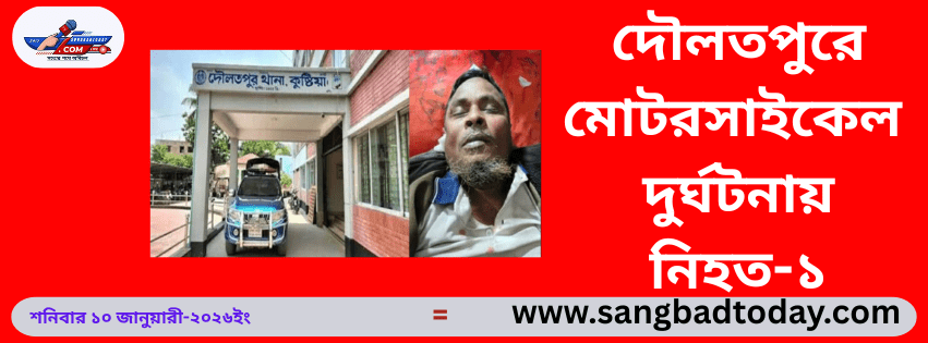 দৌলতপুরে মোটরসাইকেল দুর্ঘটনায় নিহত-১ হৃদয় রায়হান, কুষ্টিয়াঃ কুষ্টিয়ার দৌলতপুরে মোটরসাইকেলের ধাক্কায় ফারদেস দফাদার (৫০) নামে একজন কৃষক নিহত হয়েছেন। এ ঘটনায় মোটরসাইকেল চালক ইসতার আলী (৪৫) গুরুতর আহত হয়েছেন। তাকে উদ্ধার করে কুষ্টিয়া জেনারেল হাসপাতালে ভর্তি করা হয়েছে। নিহত ফারদেস দফাদার দৌলতপুর উপজেলার তারাগুনিয়া থানার মোড় এলাকার মৃত আজিম দফাদারের ছেলে। তিনি পেশায় একজন কৃষক […]