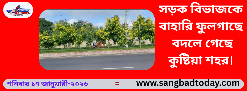 সড়ক বিভাজকে বাহারি ফুলগাছে বদলে গেছে কুষ্টিয়া শহর