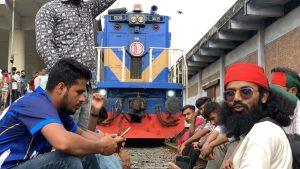 রাজশাহী স্টেশনে ট্রেন আটকিয়ে জুলাই যোদ্ধাদের অবস্থান