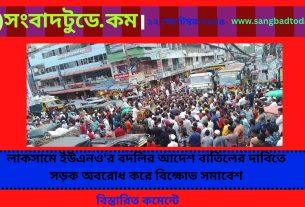 রাজারহাটে স্কুলের খেলার মাঠ বন্ধ করে আশ্রয় কেন্দ্র নির্মাণের প্রতিবাদে মানব বন্ধন অনুষ্ঠিত।