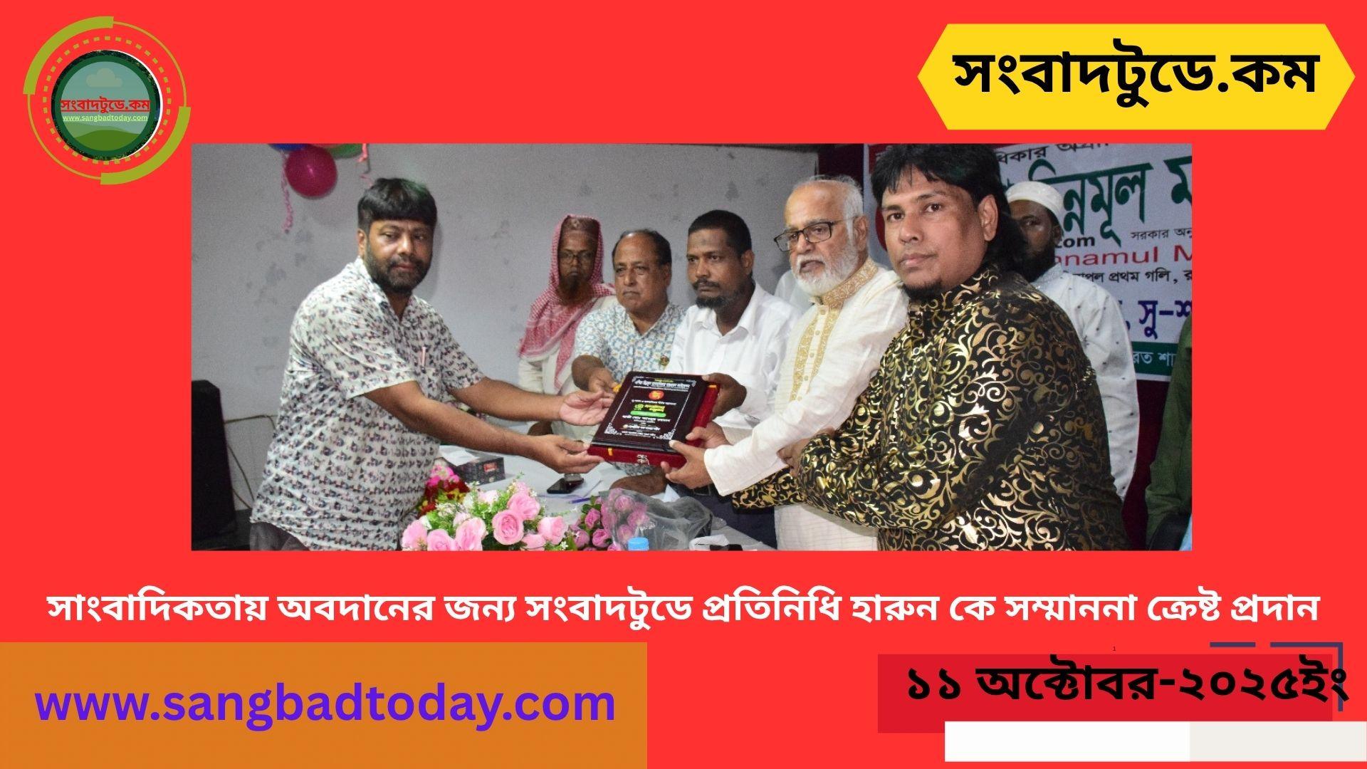 সাংবাদিকতায় অবদানের জন্য সংবাদটুডে প্রতিনিধি হা রুনকে সম্মাননা ক্রেষ্ ট প্রদান
