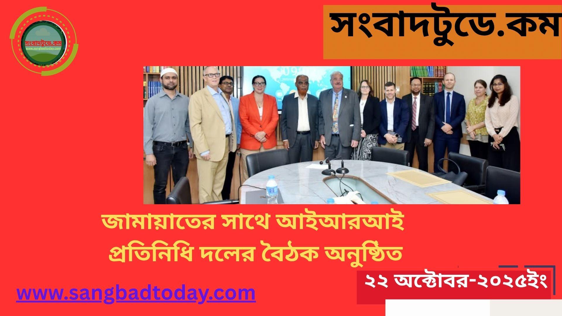 ২২ অক্টোবর (বুধবার) সন্ধ্যায় বাংলাদেশ জামায়াতে ইসলামীর কেন্দ্রীয় কার্যালয়ে জামায়াতে ইসলামীর নেতৃবৃন্দের সঙ্গে যুক্তরাষ্ট্রভিত্তিক ইন্টারন্যাশনাল রিপাবলিকান ইনস্টিটিউট (আইআরআই)-এর নয় সদস্য বিশিষ্ট একটি প্রতিনিধি দল সাক্ষাৎ করেন। সাক্ষাৎটি অত্যন্ত আন্তরিকতা ও হৃদ্যতাপূর্ণ পরিবেশে অনুষ্ঠিত হয়।