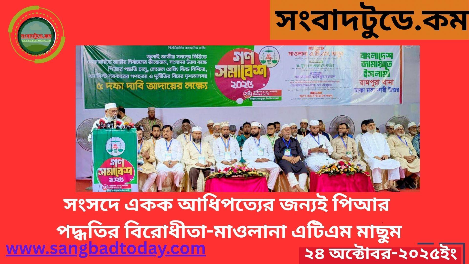 সংসদে একক আধিপত্যের জন্যই পিআর পদ্ধতির বিরোধীতা-মাওলানা এটিএম মাছুম
