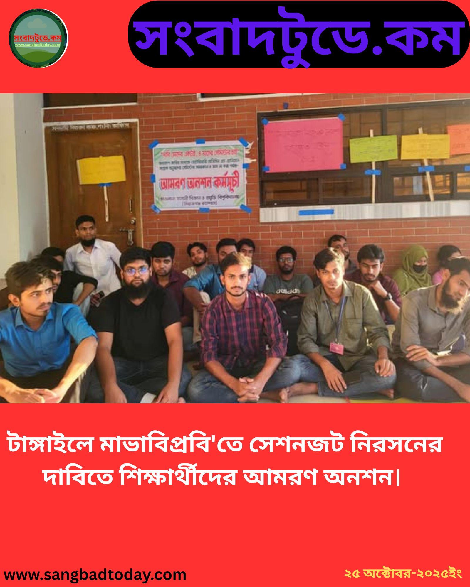 টাঙ্গাইলে মাভাবিপ্রবি’তে সেশনজট নিরসনের দাবিতে শিক্ষার্থীদের আমরণ অনশন