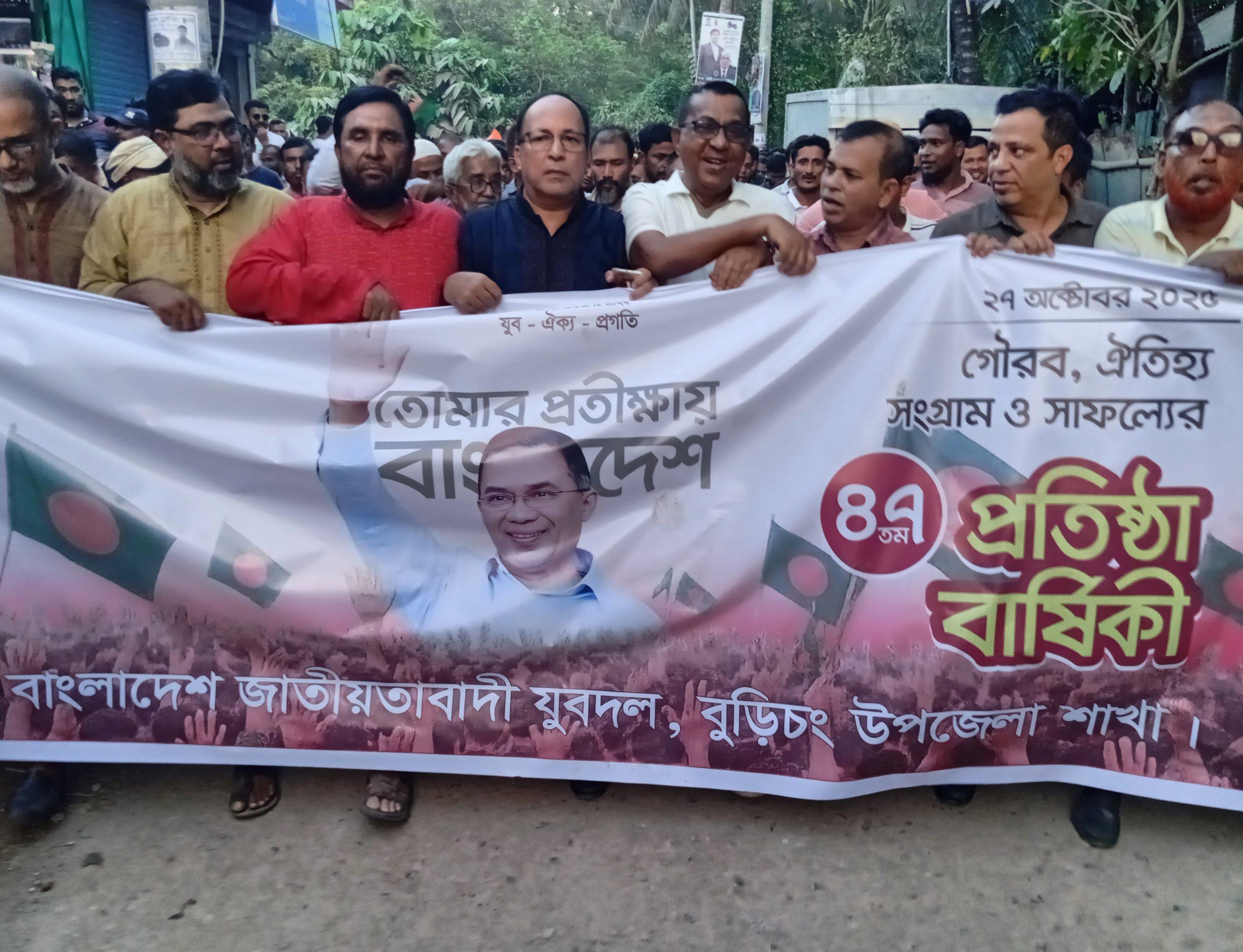 বুড়িচংয়ে যুবদলের ৪৭ তম প্রতিষ্ঠা বার্ষিকী উপলক্ষে বর্ণাঢ্য র্যালী ও আলোচনা সভা