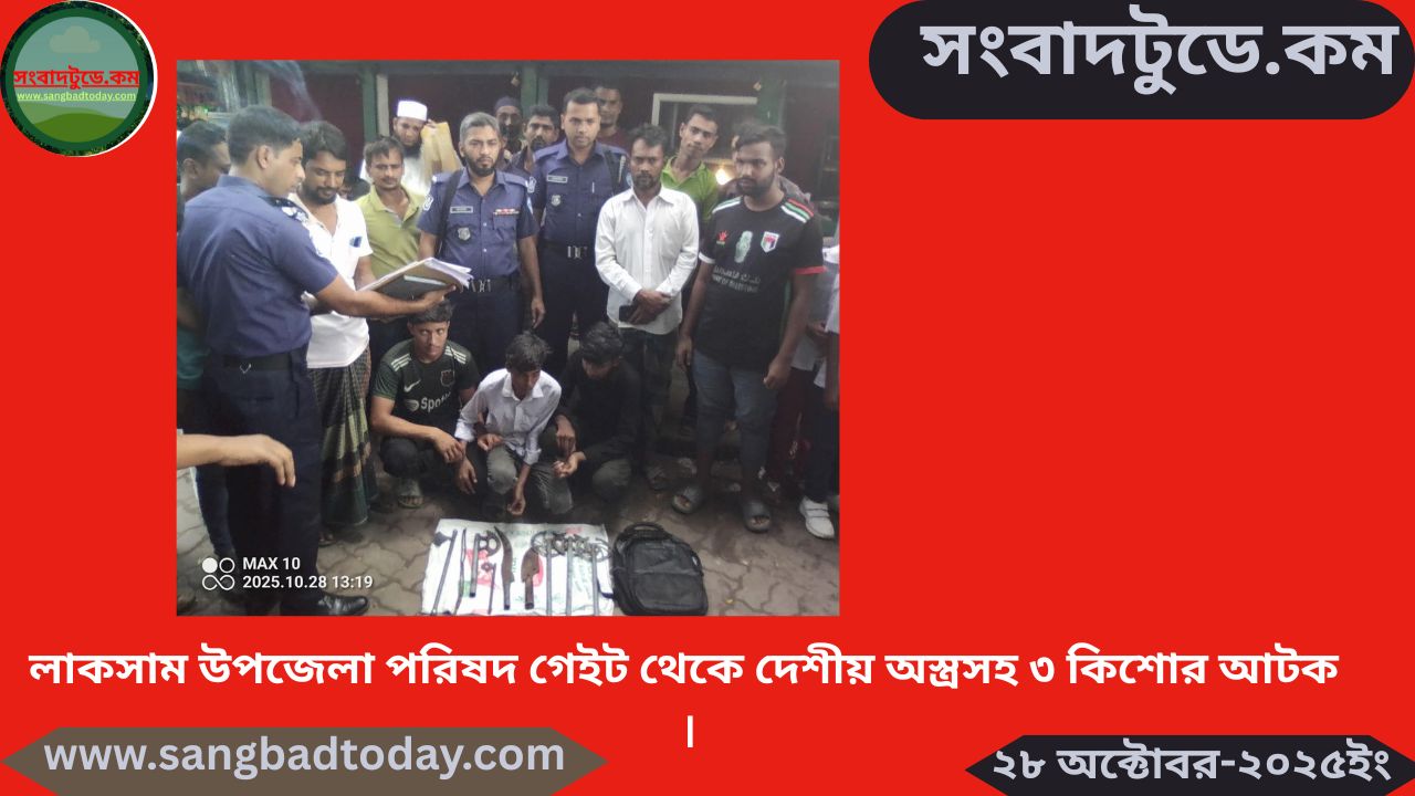 লাকসাম উপজেলা পরিষদ গেইট থেকে দেশীয় অস্ত্রসহ ৩ কিশোর আটক
