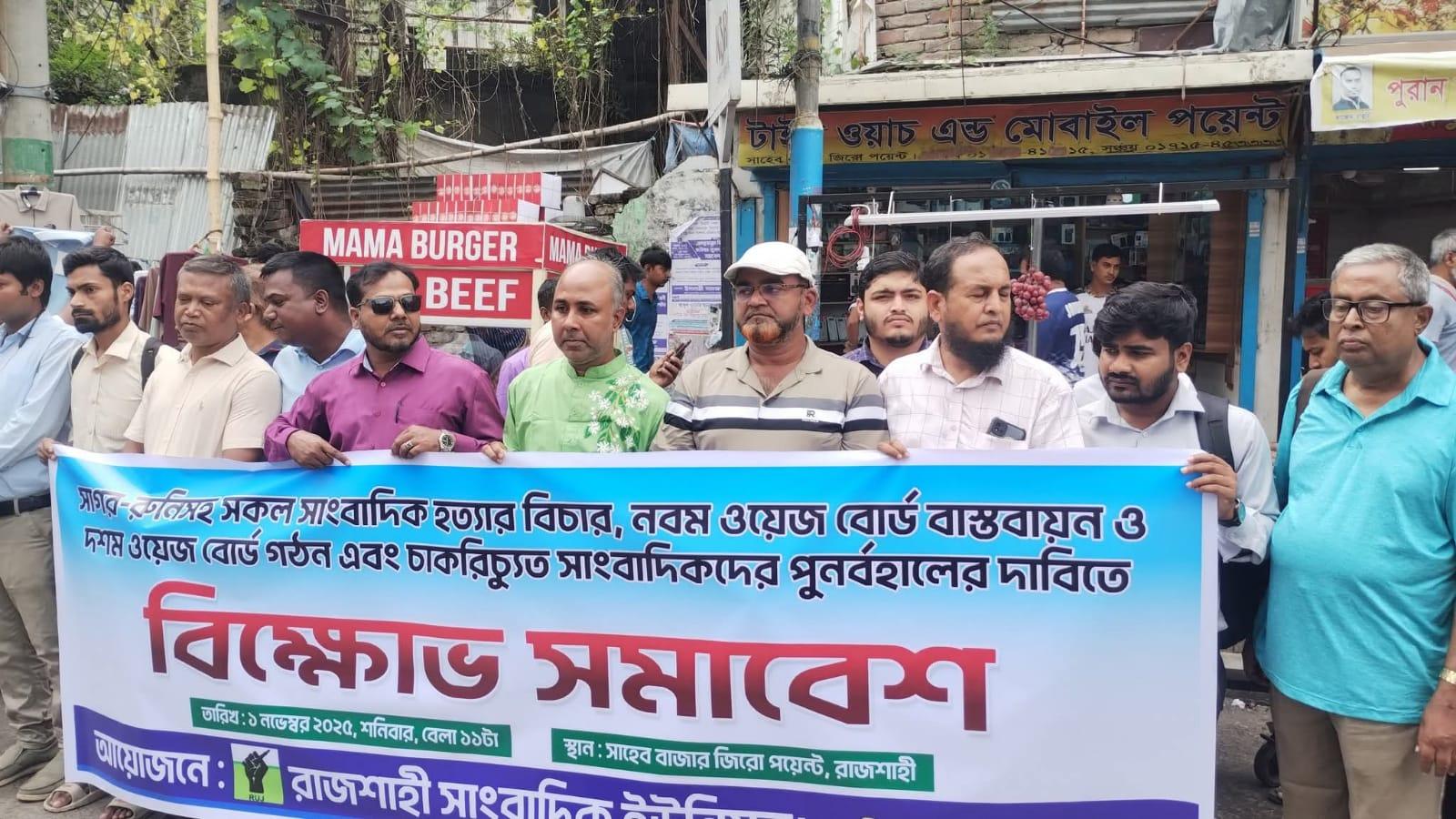 সাংবাদিক হত্যা, মজুরি বোর্ড বাস্তবায়ন এবং চাকুরিচ্যুতদের পুনর্বহালের দাবিতে