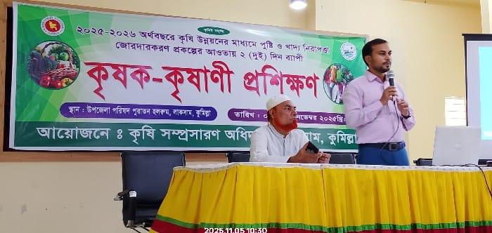 কুমিল্লার লাকসামে কৃষি উন্নয়নের মাধ্যমে পুষ্টি ও খাদ্য নিরাপত্তা জোরদারকরণ প্রকল্পের আওতায় দুই দিনব্যাপী কৃষক প্রশিক্ষণ অনুষ্ঠিত হয়েছে।