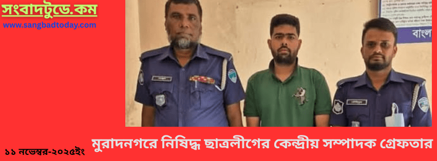 কুমিল্লার মুরাদনগরে নিষিদ্ধ ঘোষিত সংগঠন বাংলাদেশ ছাত্রলীগের ঢাকা মহানগর উত্তরের ধর্মবিষয়ক সম্পাদক মোঃ রুবেল মিয়া(২৬)কে গ্রেপ্তার করেছে বাঙ্গরা বাজার থানা পুলিশ।