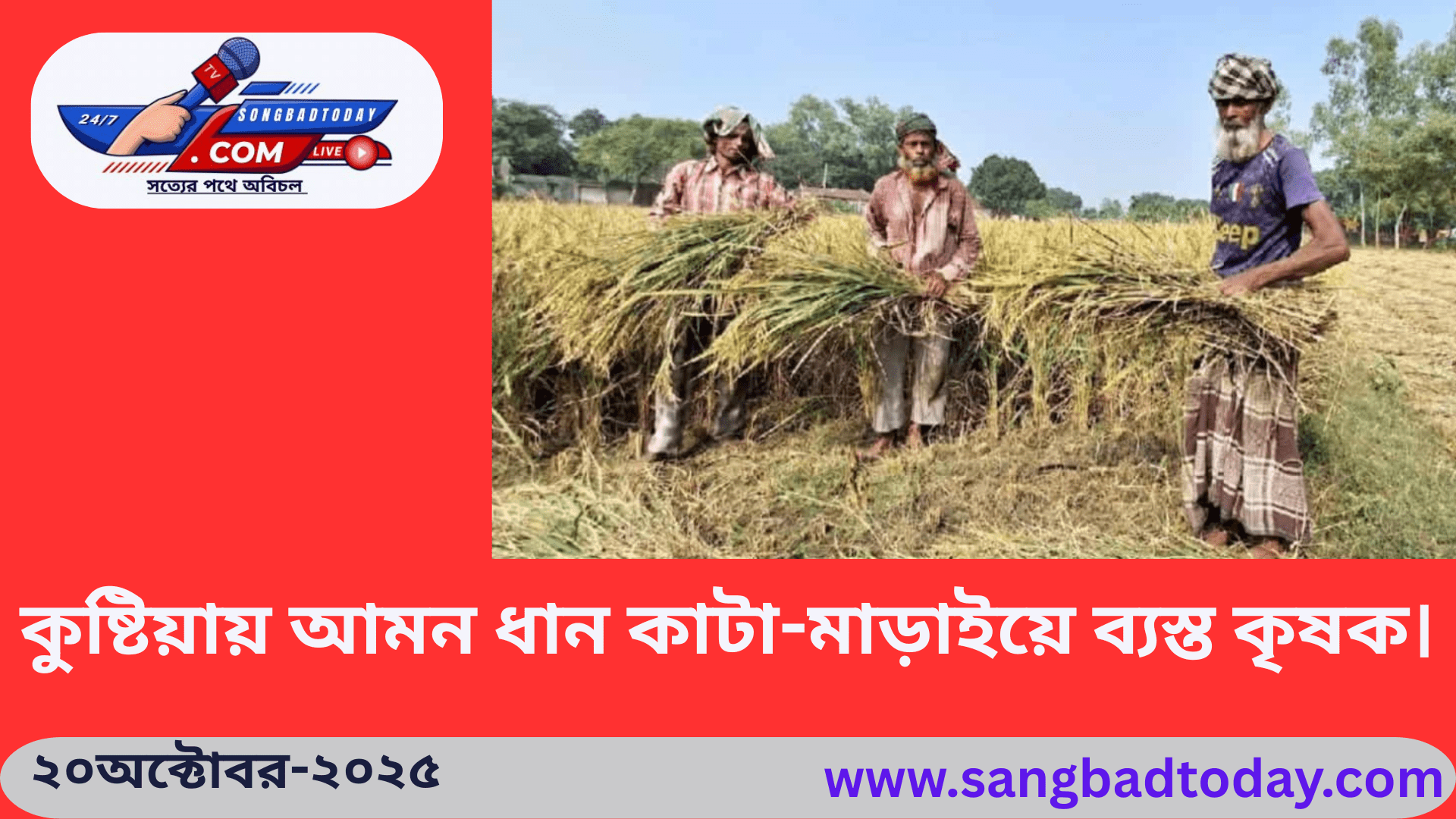মাঠের পর মাঠের পাকা সোনালী ধানের চেহারা দেখে আনন্দে আত্মহারা হয়ে ওঠে কৃষক পরিবার। একইসঙ্গে ধানের সোনালী শীষ দেখে আগামীর স্বপ্ন বুনে কৃষক-কৃষাণী । পাকা ধানের গন্ধে মৌ মৌ করে ওঠে কৃষকের আঙিনা। এই পাকা ধানের সুভাস ছড়িয়ে আছে কুষ্টিয়াজুড়েও।