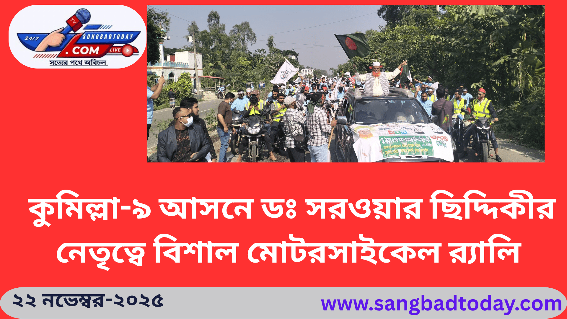 কুমিল্লা-৯ আসনের ডঃ সরওয়ার দ্দিকীর নেতৃত্বে বিশাল মোটরসাইকেল র্যালি