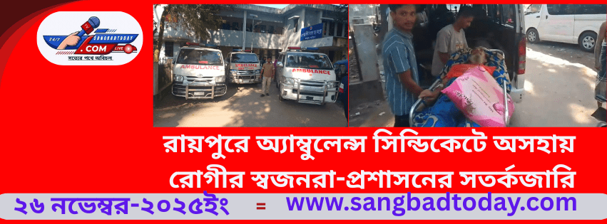 রায়পুরে অ্যাম্বুলেন্স সিন্ডিকেটে অসহায় রোগীর স্বজনরা-প্রশাসনের সতর্কজারি