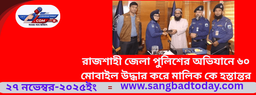 আজ ২৭ নভেম্বর ২০২৫ খ্রি. সকাল ১১:১৫ টায় পুলিশ সুপার কার্যালয়ের কনফারেন্সরুমে রাজশাহীর পুলিশ সুপার ফারজানা ইসলাম উদ্ধারকৃত ৬০ টি মোবাইল ফোন প্রকৃত মালিকের নিকট ফিরিয়ে দিলেন।