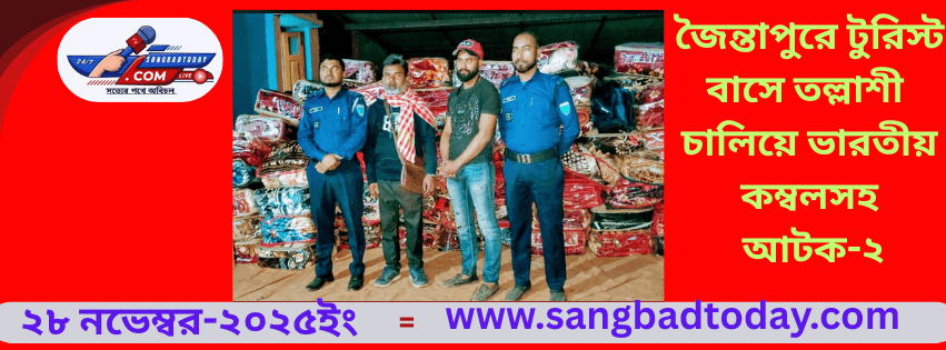 সিলেটের জৈন্তাপুর উপজেলায় জাফলং থেকে ফিরতি একটি টুরিস্ট বাসে তল্লাশী চালিয়ে বিপুল পরিমাণ ভারতীয় কম্বল সহ দুইজনকে আটক করেছে জৈন্তাপুর মডেল থানা পুলিশ।