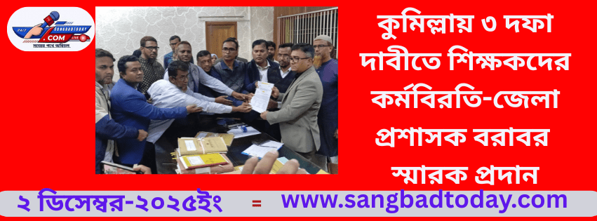 কুমিল্লায় ৩ দফা দাবীতে শিক্ষকদের কর্মবিরতি-জেলা প্রশাসক বরাবর স্মারক প্রদান
