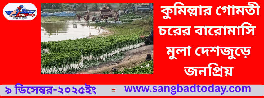 কুমিল্লার বুড়িচং উপজেলার গোমতী নদীর চরে উৎপাদিত বারোমাসি সাদা জাপানি মুলা এখন স্থানীয় বাজার ছাড়িয়ে দেশের বিভিন্ন অঞ্চলে বিক্রি হচ্ছে।