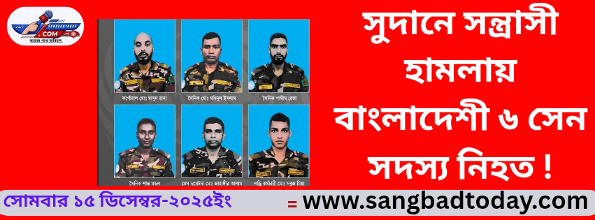 সুদানে জাতিসংঘ ঘাঁটিতে সন্ত্রাসী হামলায় ৬ বাংলাদেশ সেনাবাহিনীর শান্তিরক্ষী নিহত হয়েছেন।