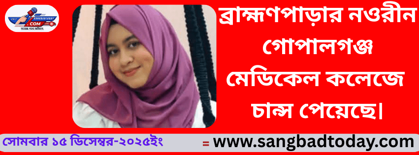 ব্রাহ্মণপাড়ার নওরীন গোপালগঞ্জ মেডিকেল কলেজে চান্স পেয়েছে