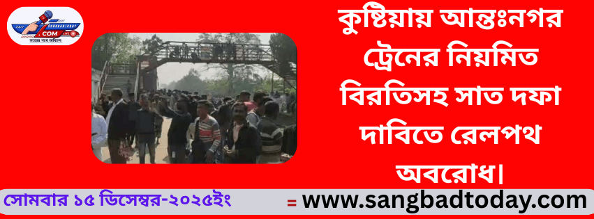 কুষ্টিয়ায় আন্তঃনগর ট্রেনের নিয়মিত বিরতিসহ সাত দফা দাবিতে রেলপথ অবরোধ