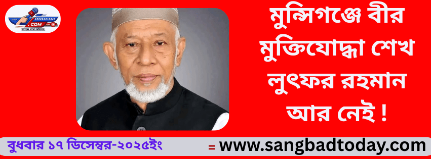 মুন্সিগঞ্জ জেলা আওয়ামী লীগের সাধারণ সম্পাদক ও বীর মুক্তিযোদ্ধা শেখ লুৎফর রহমান ইন্তেকাল করেছেন (ইন্না লিল্লাহি ওয়া ইন্না ইলাইহি রাজিউন)।